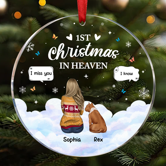 Memorial Dog Cat First Christmas In Heaven - Personalized Circle Acrylic Ornament