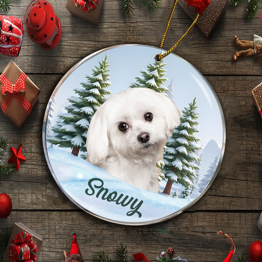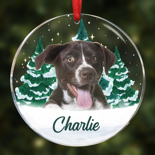 Custom Photo Pet Face Christmas Trees - Personalized Circle Acrylic Ornament