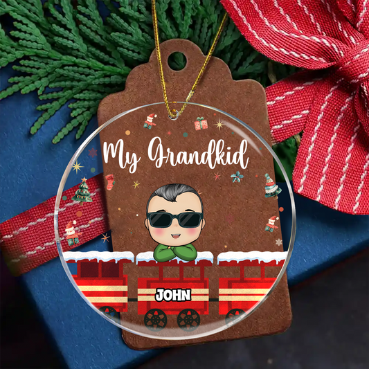 Christmas Train Chibi Grandkids 2024 - Personalized Circle Acrylic Ornament