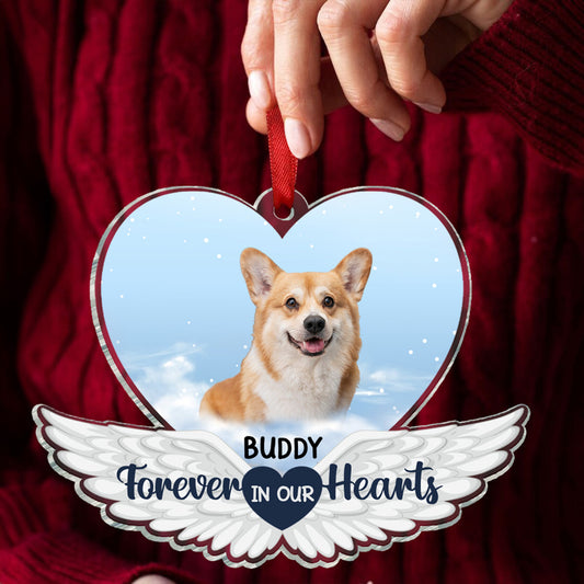Custom Photo Pet Face Forever In Our Hearts Dog Cat Family - Personalized Custom Shaped Acrylic Ornament