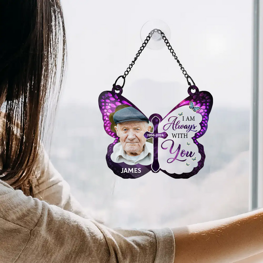 Custom Photo I Am Always With You Butterfly - Personalized Window Hanging Rainbow Suncatcher