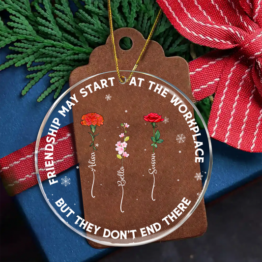 Friendships May Start At The Workplace Birth Flower - Personalized Circle Acrylic Ornament