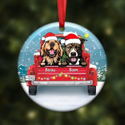 Dog Lovers - Dogs on the Snow - Personalized Acrylic Circle Ornament