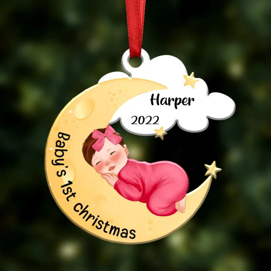 Baby - Newborn Baby Sleeps On Moon - Personalized Ornament - Gift For Family Members