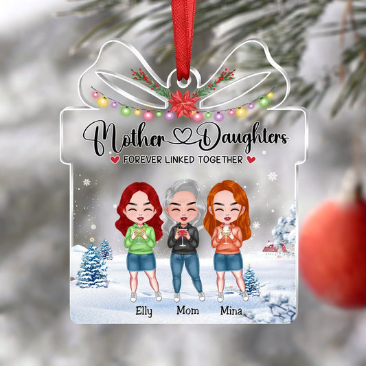 Family - Mother Daughters Forever Linked Together - Personalized Transparent Ornament (Ver 2)