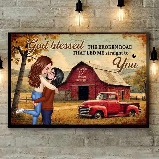 God Blessed The Broken Road That Led Me Straight To You, Couple Farmhouse Personalized Poster, Gift for him, Gift for her