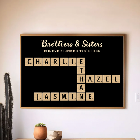 Brothers & Sisters Forever Linked Together Crossword Puzzle Art Personalized Poster, Gift For Brothers, Sisters, Siblings, Family