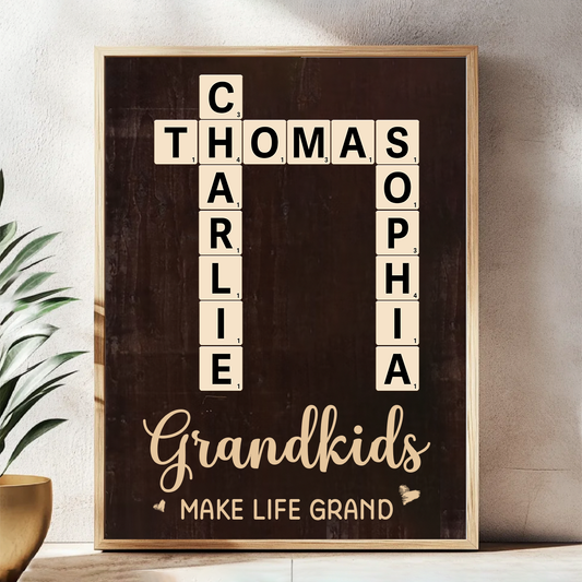 Grandkids Make Life More Grand Crossword Puzzle Art Personalized Poster, Christmas Gift for Grandma