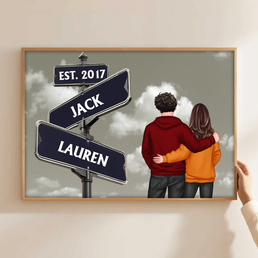 Back View Couple Street Signs Personalized Poster, Gift For Him, For Her, Husband, Wife