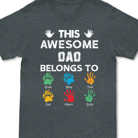 Awesome Dad, Grandpa Belongs To - Personalized T-shirt - Gift For Dad - Hand Prints