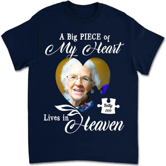 Family - Memorial Upload Photo, A Big Piece Of My Heart Lives In Heaven - Personalized Unisex T-shirt