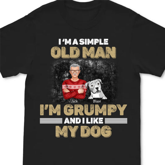 Dog Lovers - I'm A Simple Old Man, I'm Grumpy And I Like My Dog - Personalized Black Unisex T-Shirt