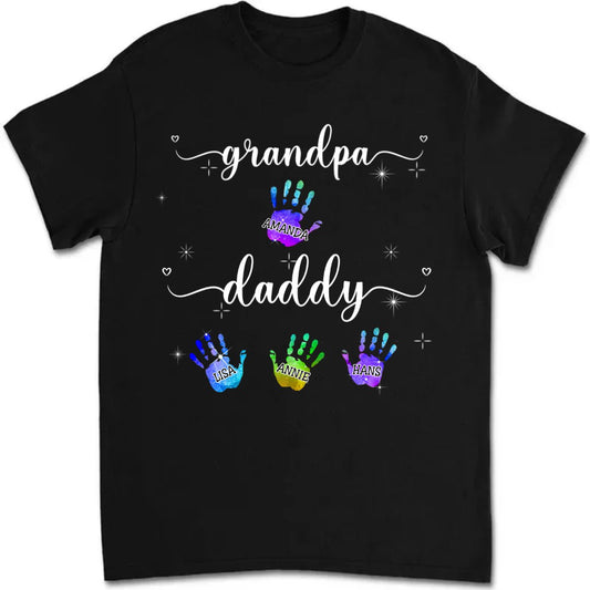 Father's Day - Dad Grandpa Colorful Hand Print - Personalized Unisex T-Shirt