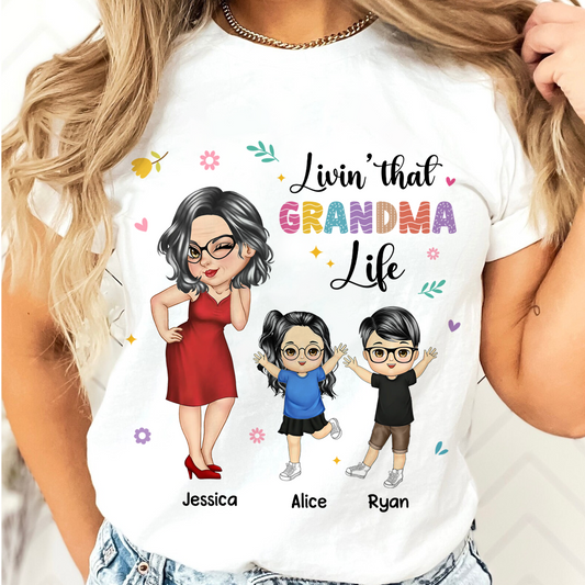 Living That Grandma Life - Funny Gift For Grandma, Mom, Nana, Gigi - Personalized T Shirt