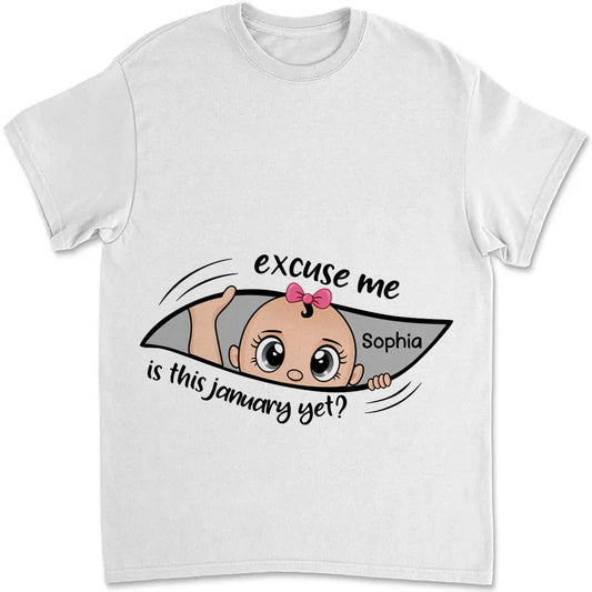 Excuse Me Is It Time Yet Pregnancy Announcement Expecting Mom Maternity - Personalized T Shirt