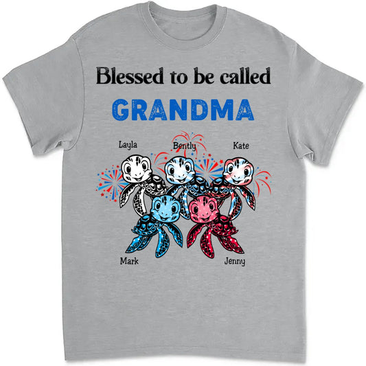 Grandma - Grandma Mom Turtle Custom Names - Personalized Unisex T-Shirt