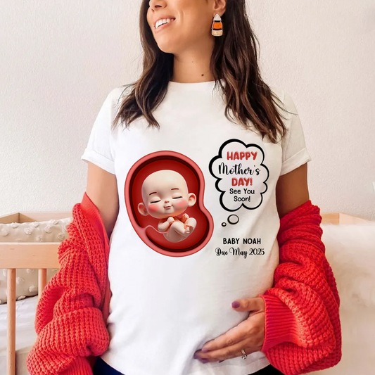 Happy Mother's Day Mommy See You Soon From Baby Personalized Shirt, Custom Pregnancy Reveal Shirt, Mother's Day Gift For Expecting Moms