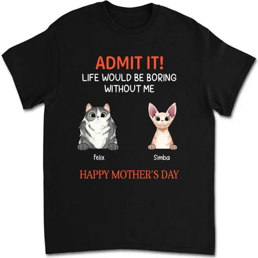 Cat Lovers - Happy Mother's Day Admit It Life Would Be Boring Without Me - Personalized T-Shirt