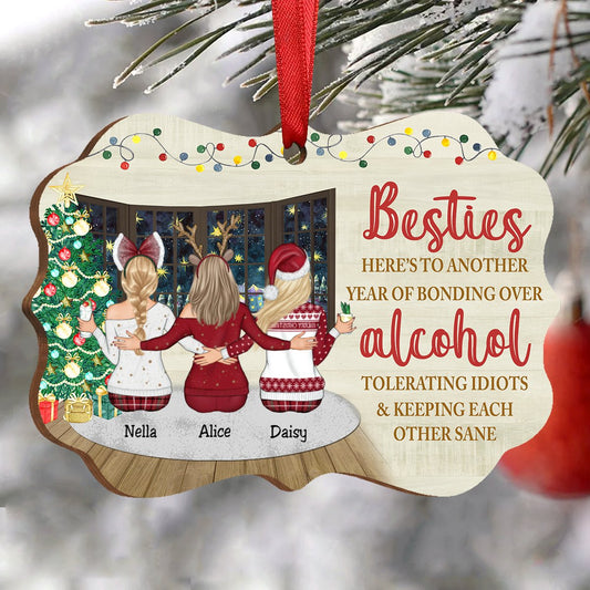 Sisters - Here's To Another Year Of Bonding Over Alcohol Tolerating Idiots - Personalized Christmas Ornament