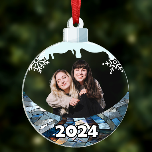 Custom Photo Besties Sisters Family Snowflakes - Personalized Custom Shaped Acrylic Ornament