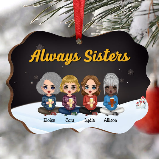 Sisters - Always Sisters Dolls Sitting - Personalized Christmas Acrylic Ornament