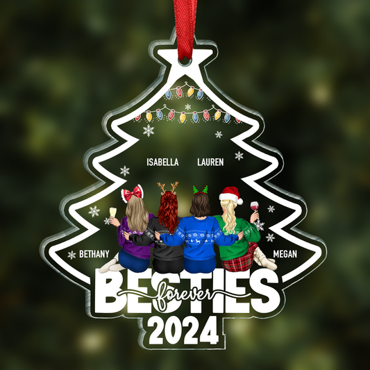 Besties Sisters Forever Christmas Tree - Personalized Custom Shaped Acrylic Ornament