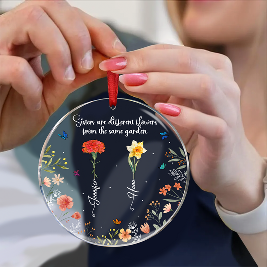 Birth Flower Sisters From The Same Garden - Personalized Circle Acrylic Ornament