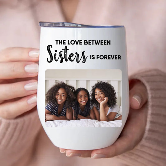 Sisters - The Love Between Sisters Is Forever - Personalized Wine Tumbler