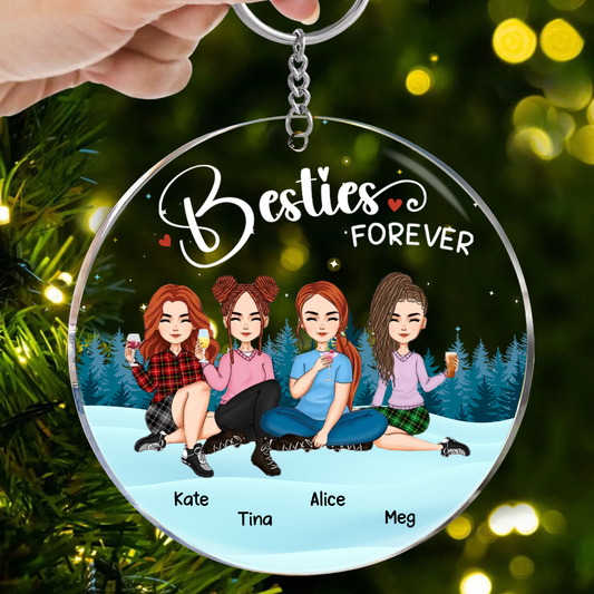 Besties Sisters Forever Sitting Together - Personalized Circle Keychain