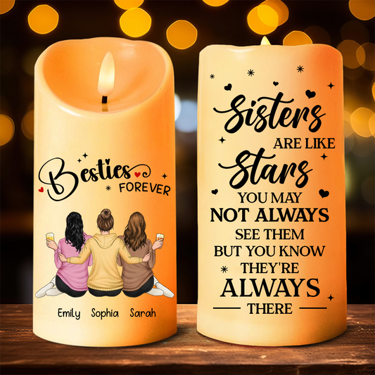 Sisters Are Like Stars They're Always There - Personalized Flameless LED Candle