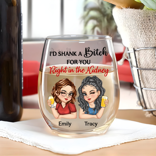 Right In The Kidney Besties Sisters - Personalized Stemless Wine Glass