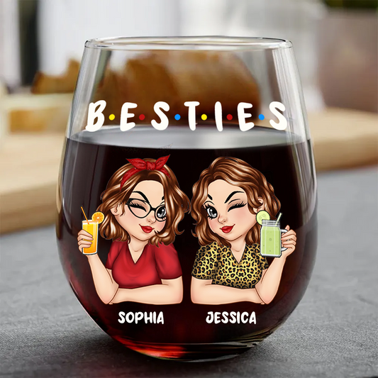 Besties Sisters Friends Turban Women - Personalized Stemless Wine Glass