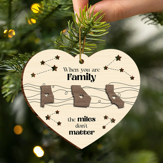Long Distance Family Friends Siblings Sisters Besties Personalized Heart Shaped Wooden Ornament, Togetherness Christmas Gift