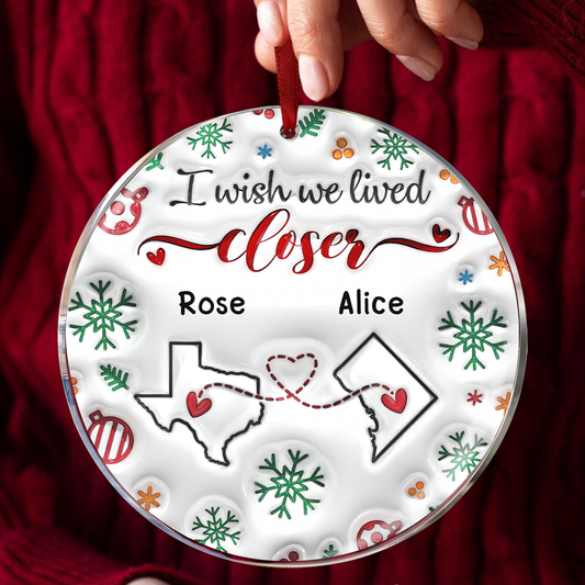 I Wish We Lived Closer - Bestie Personalized Custom 3D Inflated Effect Printed Ornament - Ceramic Round Shaped - Christmas Gift For Best Friends, BFF, Sisters