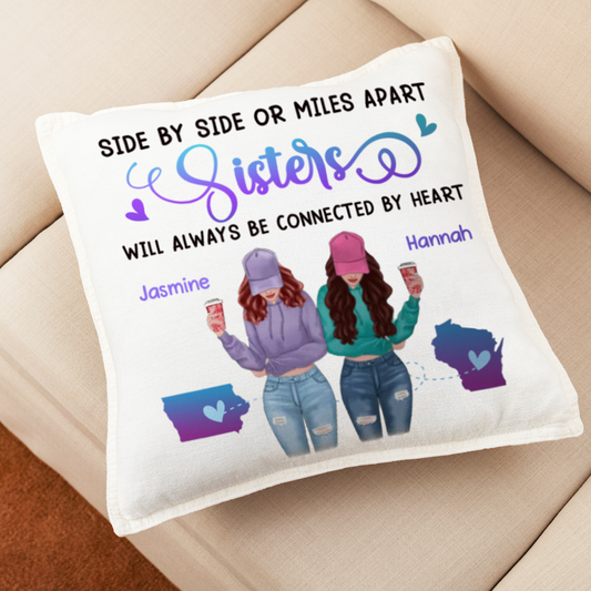 Long Distance Sisters Besties Modern Girls Personalized Pillow