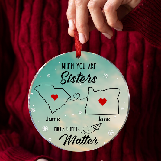Family Siblings Sisters Besties Long Distance Personalized Acrylic Ornament, Christmas Gift