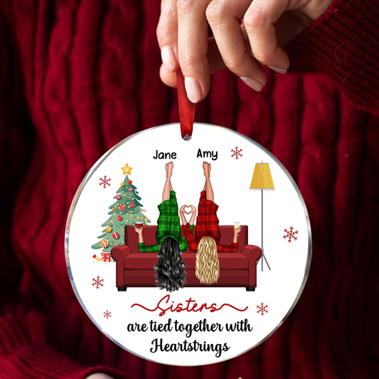 Sisters Are Tied Together With Heartstrings Personalized Ornament, Christmas Gift for Sisters, Siblings