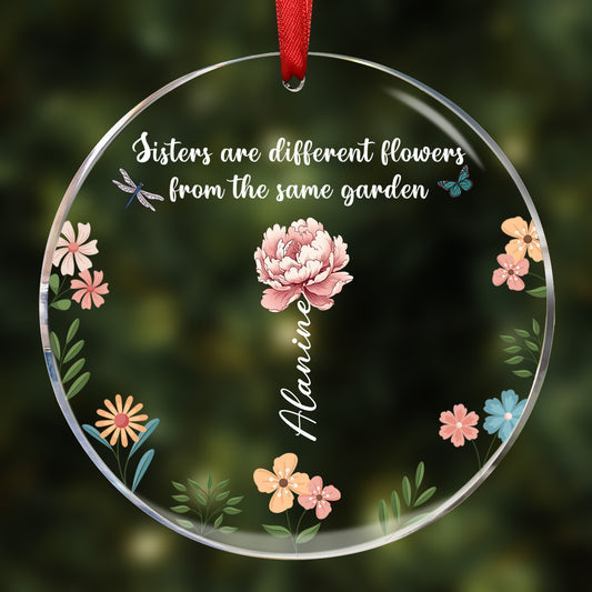 Sisters Are Different Flowers From The Same Garden Personalized Acrylic Ornament, Christmas Gift For Sisters, Siblings, Besties