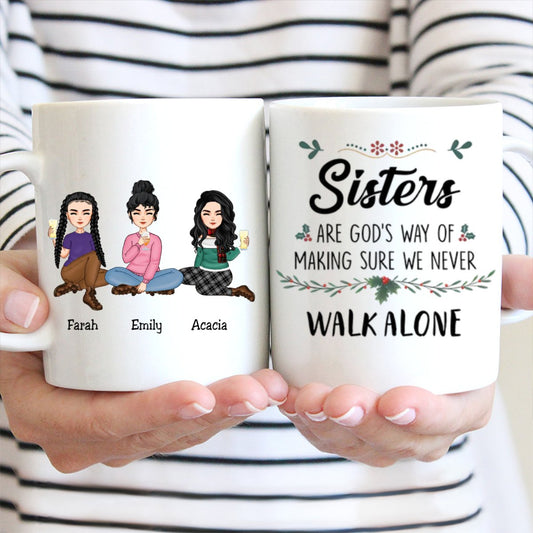 Sisters - Sisters Are God's Way Of Making Sure We Never Walk ALone - Personalized Mug (Ver 10)