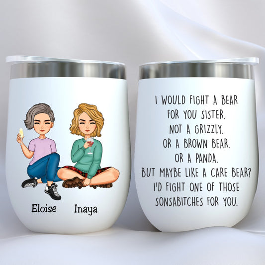 Sisters - Fight A Bear For You Sister - Personalized Wine Tumbler (HA)