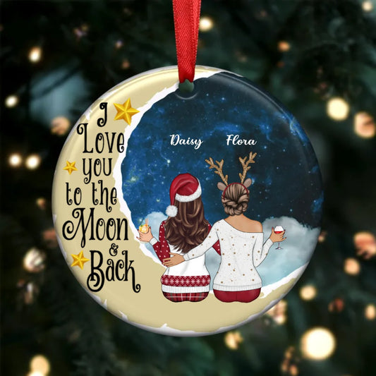 Sisters - I Love You To The Moon And Back - Personalized Circle Ornament (LH)