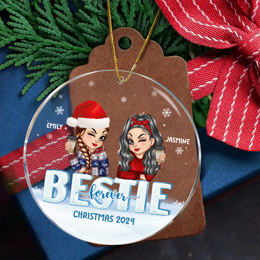 Besties Forever Christmas Sisters - Personalized Circle Acrylic Ornament