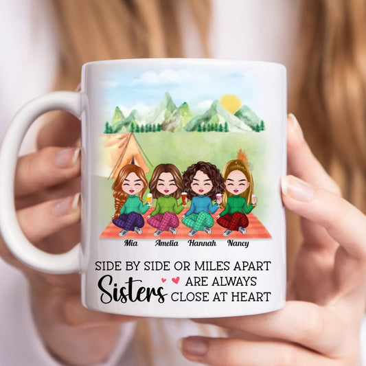 Sisters - Side By Side Or Miles Apart Sisters Are Always Close At Heart - Personalized Mug
