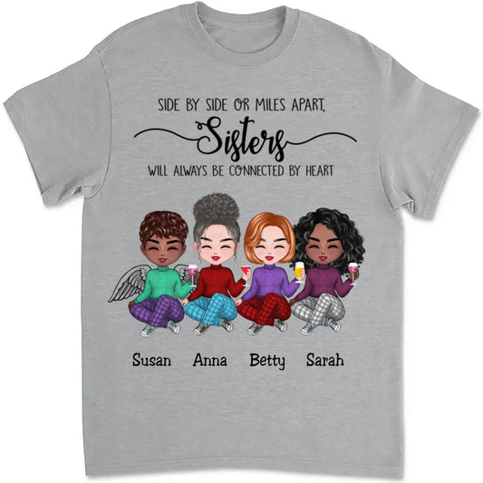 Sisters - Side By Side Or Miles Apart, Sisters Will Always Be Connected By Heart - Personalized T-shirt