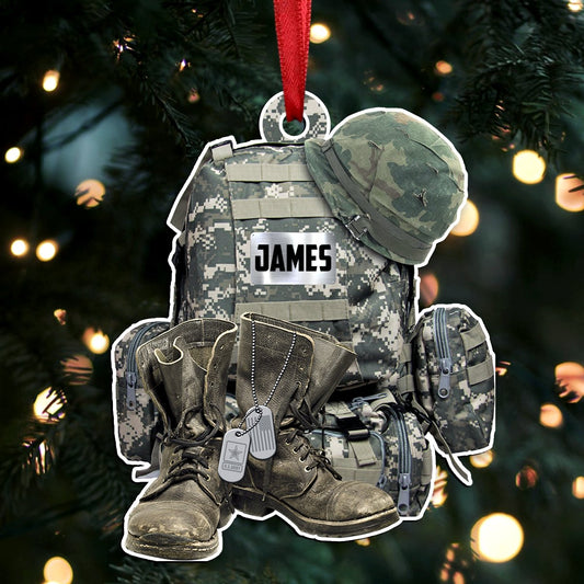 Military Uniform - Soldier Backpack, Boot & Hat - Personalized Ornament