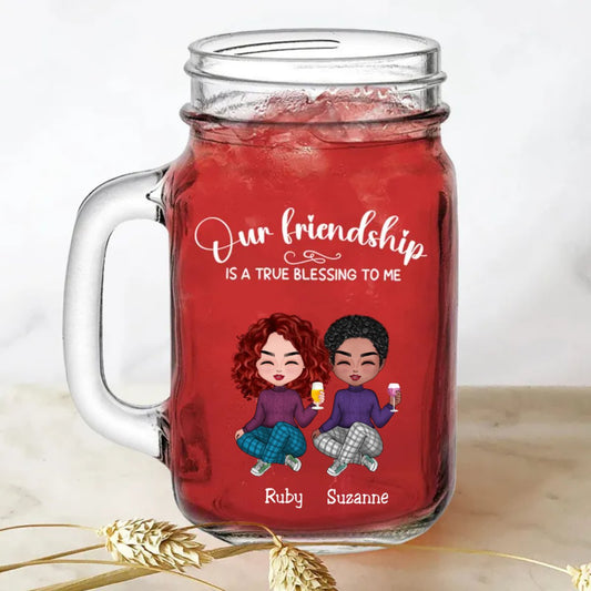 Friends - Our Friendship Is A True Blessing To Me - Personalize Drinking Jar (White)