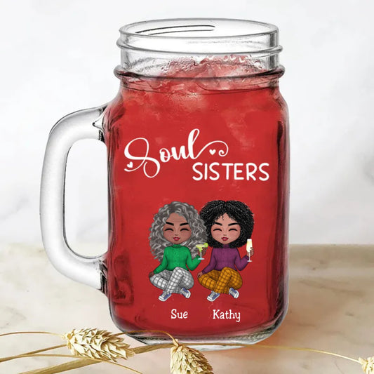Sisters - Soul Sisters - Personalize Drinking Jar (White)