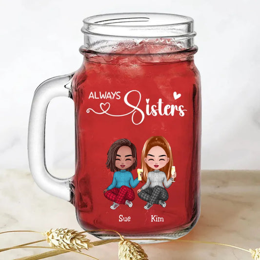 Sisters - Always Sisters - Personalize Drinking Jar (White)