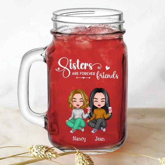 Sisters - Sisters Are Forever Friends - Personalize Drinking Jar (White)