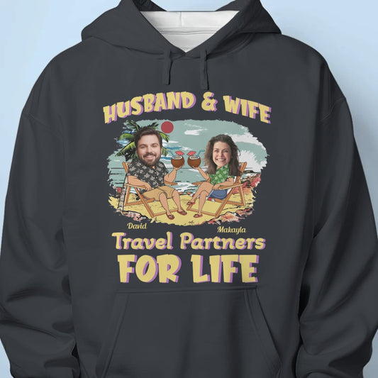 Custom Photo Husband And Wife Travel Partners For Life Vacation - Personalized Unisex T-shirt, Hoodie, Sweatshirt